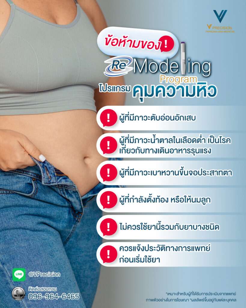 ⚠️ ข้อมูลนี้เป็นไปเพื่อให้ความรู้ทั่วไป ไม่ใช่คำแนะนำทางการแพทย์เฉพาะบุคคล ผู้ที่สนใจควรปรึกษาแพทย์ก่อนเข้าร่วมโปรแกรม Re Modeling Program