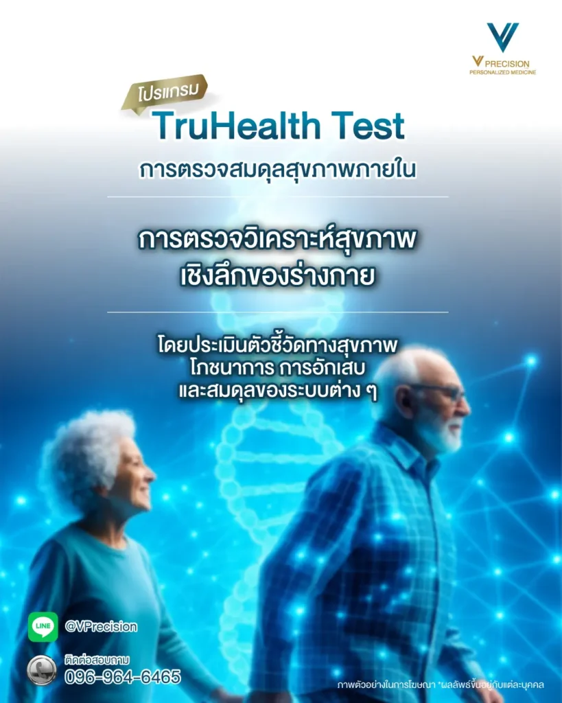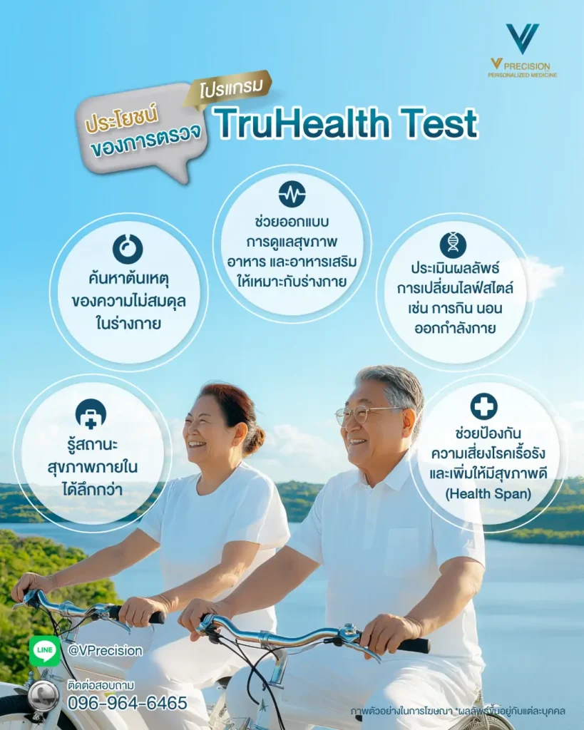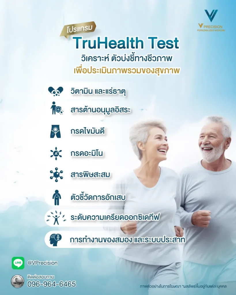 โปรแกรม TruHealth Test วิเคราะห์ตัวบ่งชี้ทางชีวภาพ (Biomarkers) มากกว่า 110 รายการ เพื่อประเมินภาพรวมของสุขภาพในหลายมิติ เช่น